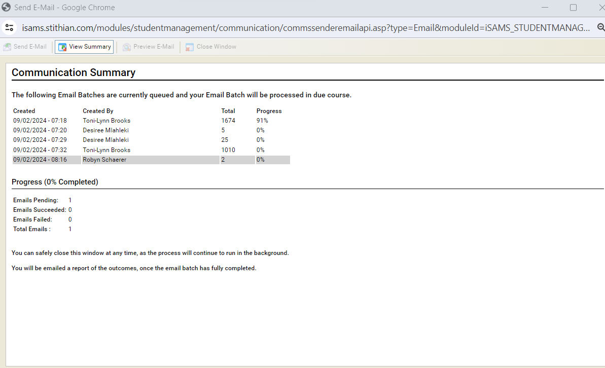 In addition to this, it would be great if we were able to manage the queue and prioritise the send of certain emails over other emails. At the moment, if you are trying to reset 2FA for a user, for example, but there is a newsletter being sent to 2500 parents, the 2FA email is queued and then expires before it is received.