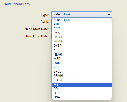 Order list of SEN types alphabetically
