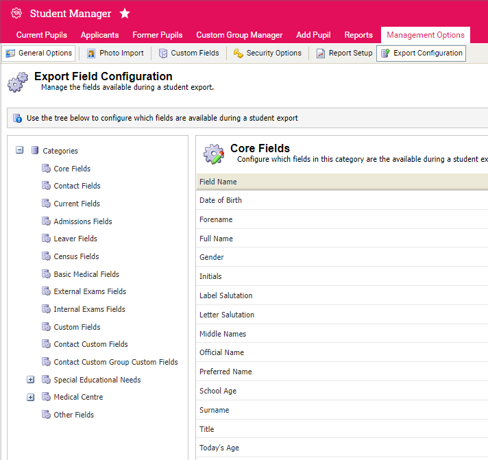 While we can pre-empt this on the introduction of new students into iSAMS by ensuring that the field is always set explicity (ie.not blank/undefined), it can be more problematic for us for the set of students on record prior to the introduction of the new field. Retrospective action has to be taken to populate the new field and this is not always straightforward when the new field hasn���t been introduced to the Export Wizard field set and/or to the fields available for group/batch edit. It���s essential that the new field be made available in the Export Wizard. To identify the students affected I can use a direct query but this isn���t something that the school office team would be able to do themselves. I���ve just rechecked and ���Preferred Surname��� isn���t yet available to export ��� see screenshot below.
