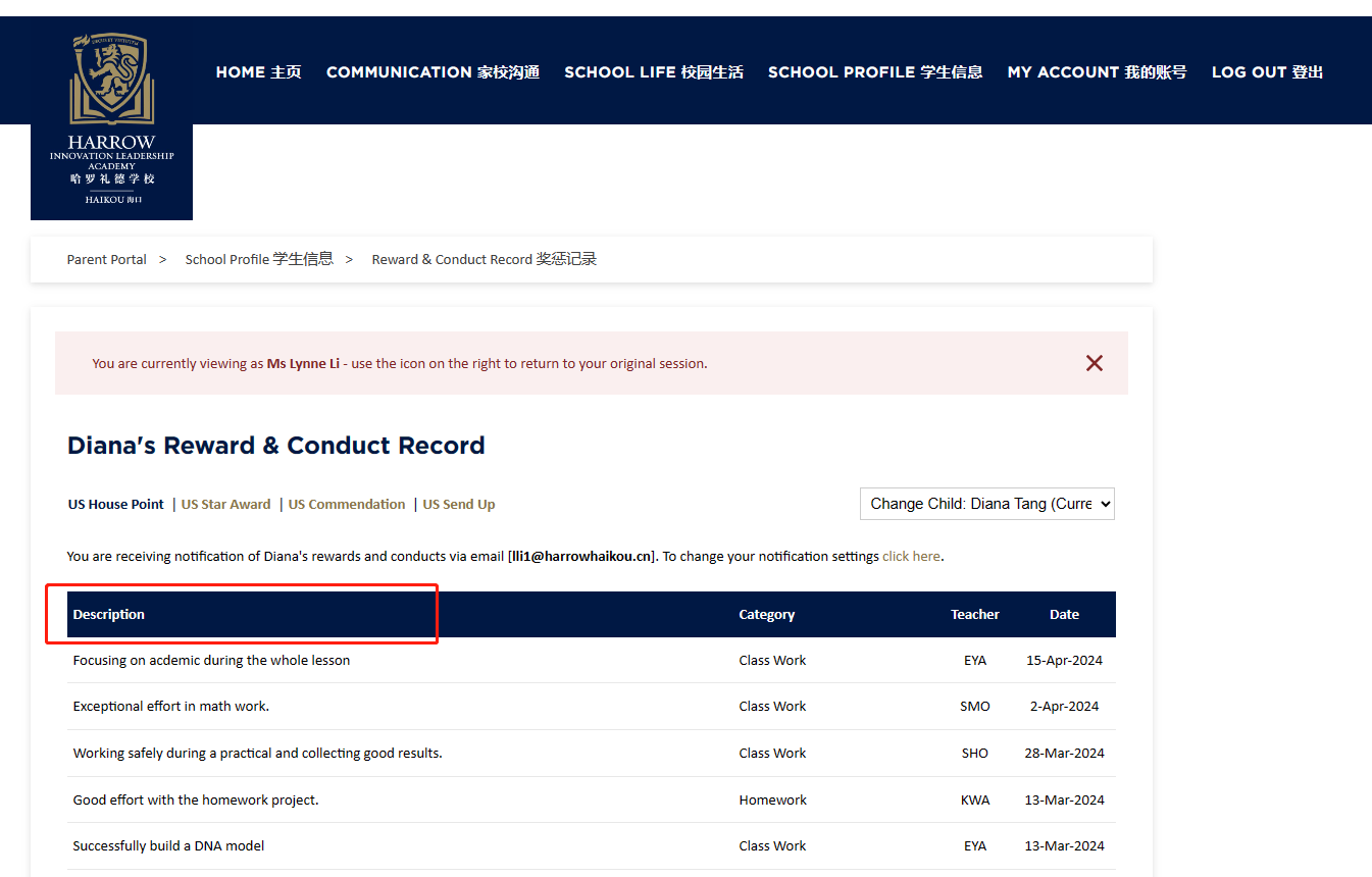 As our school are going to activate the parent portal and open to our parents, there might be some data we have decided to be not shown to parents, for example, the description of Reward & Conduct, please take a look at the specific details in the attached screenshot, we don't think it is good for parents to know all the details of R&C data.