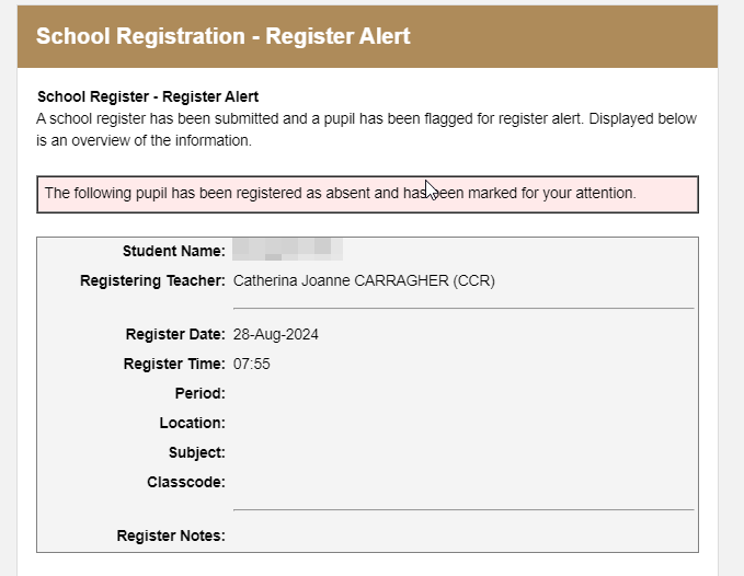 It would be really useful if iSAMS can enhance the Register Alert Email template by incorporating additional placeholders such as: