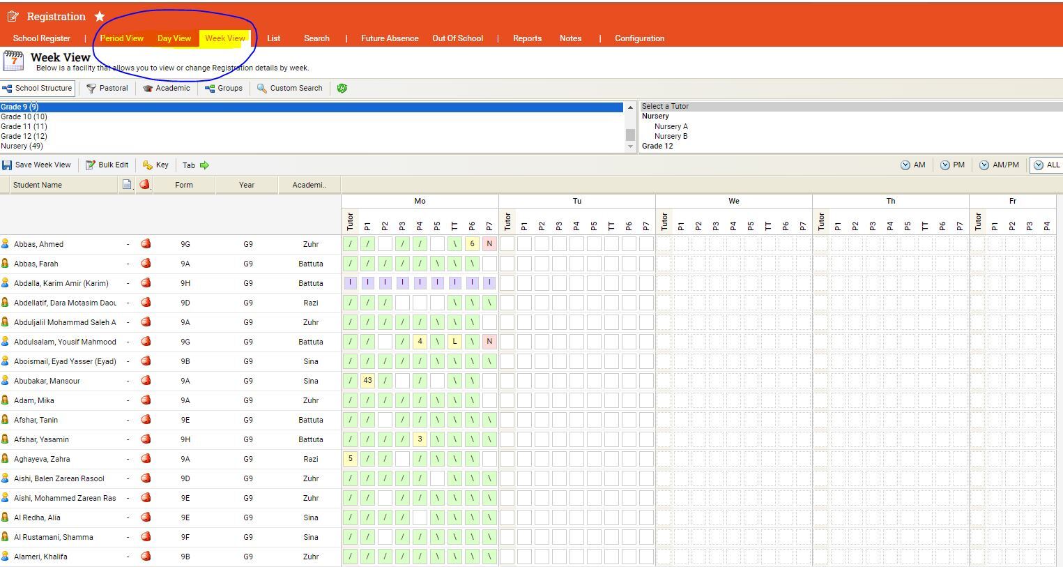 Registration present code is not displaying in day/week view. It is giving option to input it in the registration. But in day/week view it just shows as present. Usages of the code is to monitor students and it is not helpful if it is not displayed in Day/Week View