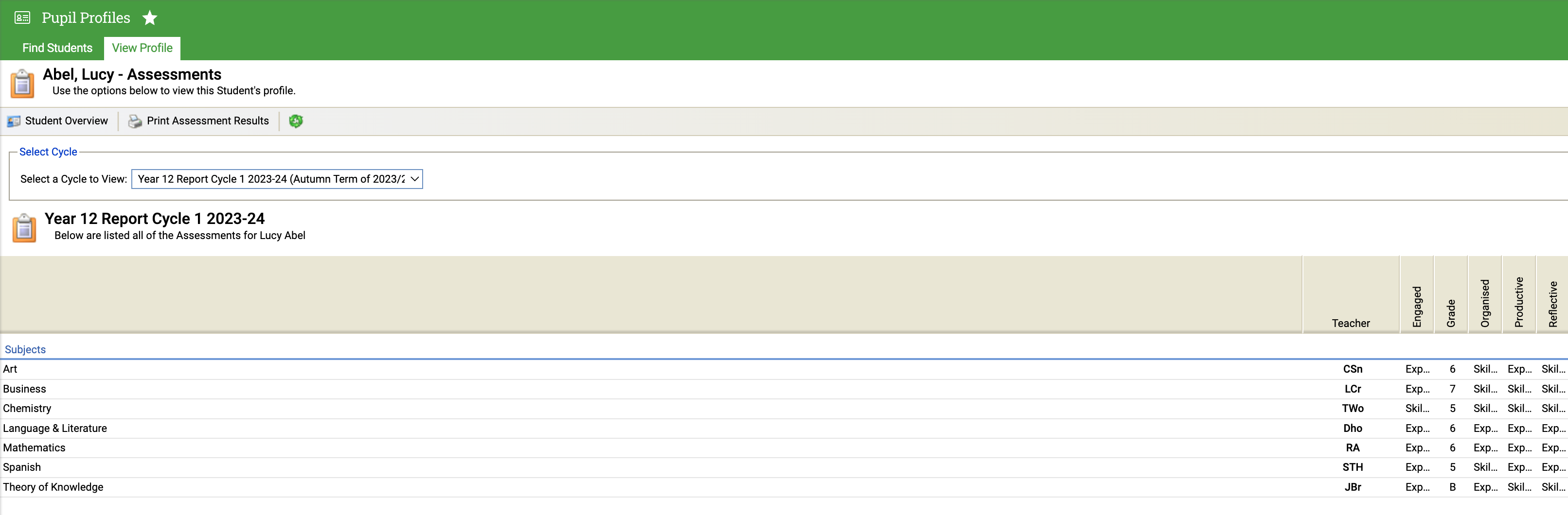 When we go to pupil profile, search for a student, select Assessments and Reports then select the required report cycle, data is displayed as "Subject" and the associated grades. However, the subject field does not provide us with sufficient information. For example, the subject of Chemistry in Y13 could mean IB Chemistry SL or HL.