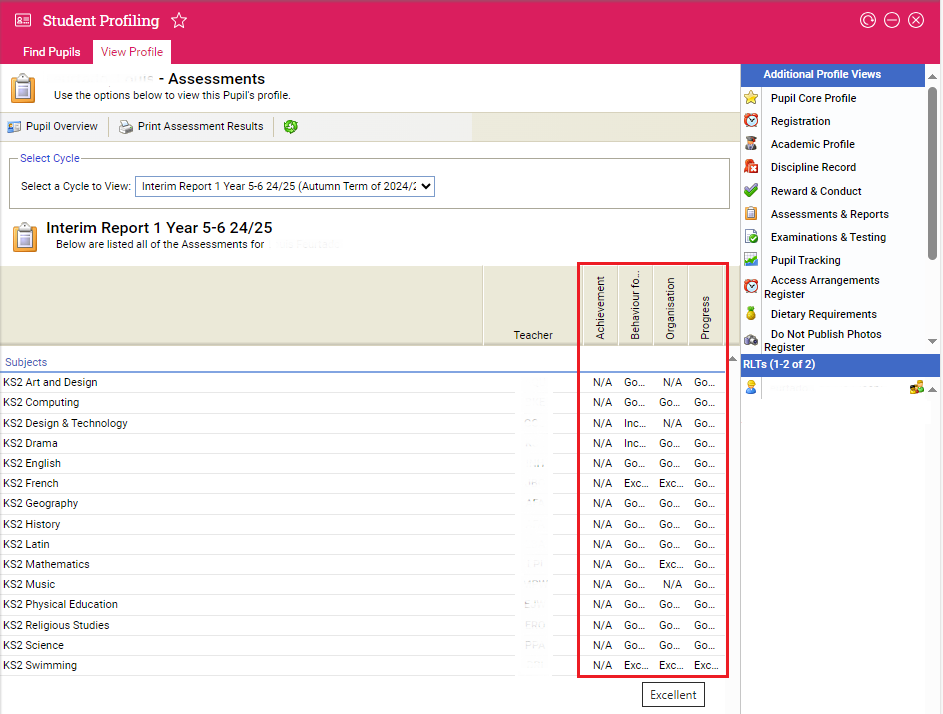 Pupils' assessment grades can be found in the Assessments & Reports section in the Student Profiling module.