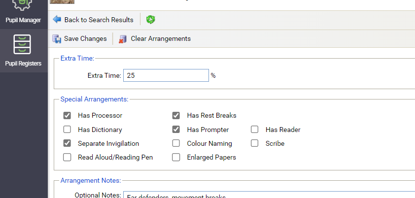 A significant number of our students have Ear Defenders and a few need coloured paper / overlays (which is different from colour naming) as part of their access arrangements. While we can detail these additional needs in the Arrangement Notes free text box, it would be incredibly helpful for these to categories to be added as tick boxes so that when the EAA report is pulled they are clearly indicated access needs.