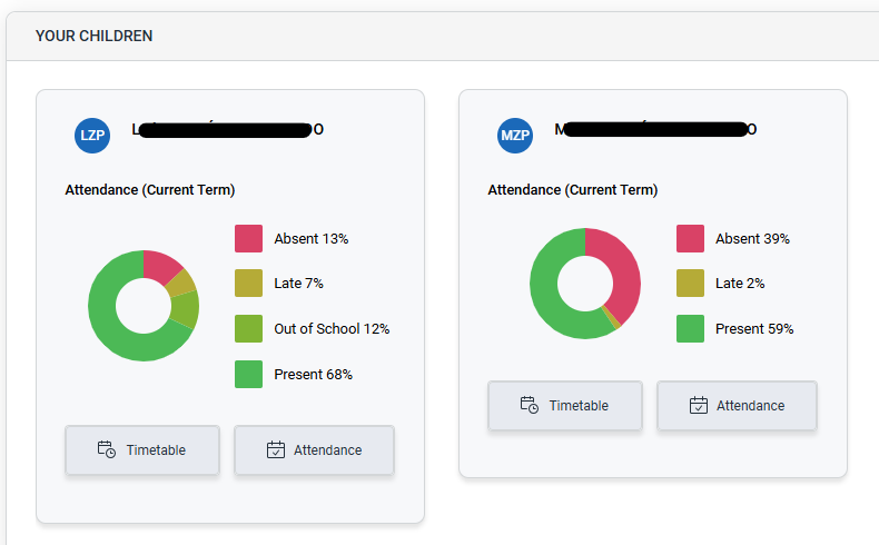 I agree! It would also be useful to be able to turn these widgets on or off independently from the Attendance table page. Some parents simply prefer only to see a list of attendance rather than a graph. This definitely need urgent consideration as the confusion it causes parents is very much on the increase.