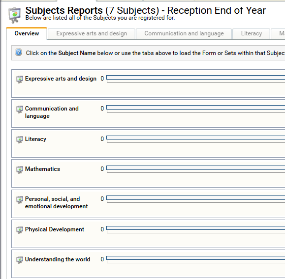 e.g. EYFS have 17 ELG's. These are grouped into different categories\subjects. Communication & Language has 1 & 2 ELG, Physical Development has 3 & 4 ELG, etc through to Expressive arts and design has 16 & 17 ELG.
