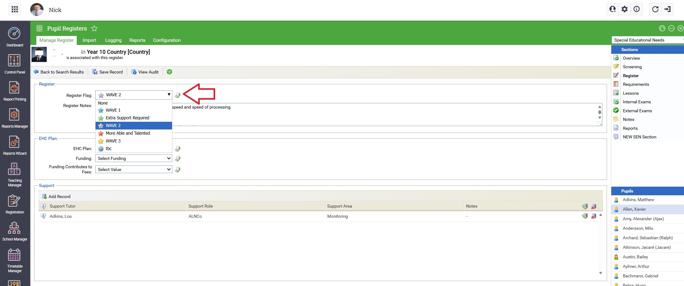 I am encountering an issue with the iSAMS REST API when trying to retrieve the "Register Flag" value from the "Pupil Registers -> Registers" screen.