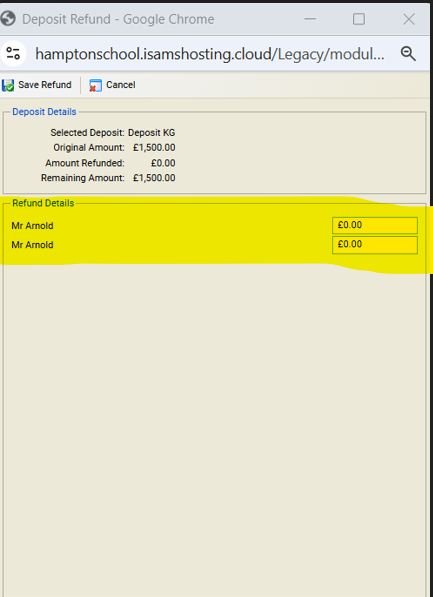 Can the initial of the payers/contacts be included in the return deposit confirmation box so you can tell which payer is which when refunding deposits: