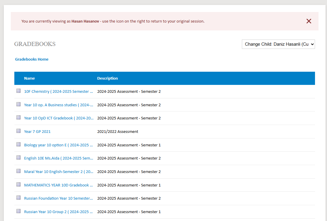 It would be very helpful if gradebooks could be sorted or categorized, for example by academic years or sets, in the Parent Portal. We believe this improvement would make the system much easier for parents to use and would reduce many complaints.