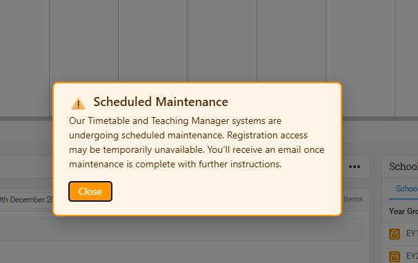 Can we make it more obvious that there is maintenance, e.g. popup or a more noticeable message thats visible troughout iSAMS.